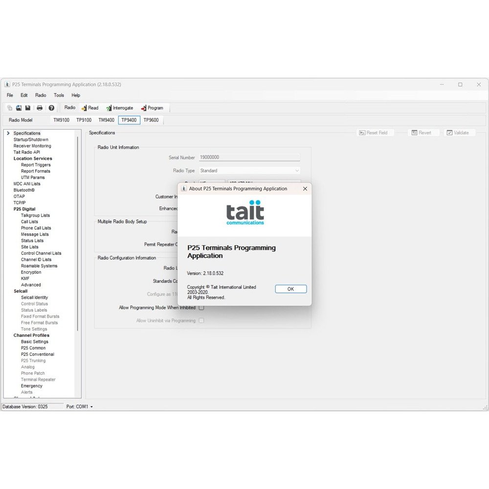 TAIT TM9100/TP9100/TM9400/TP9400/TP9600/TP9800/TP9900 P25 v3.5.0.19 (database 0463) Terminal Programming Application - Instantly available for Download!